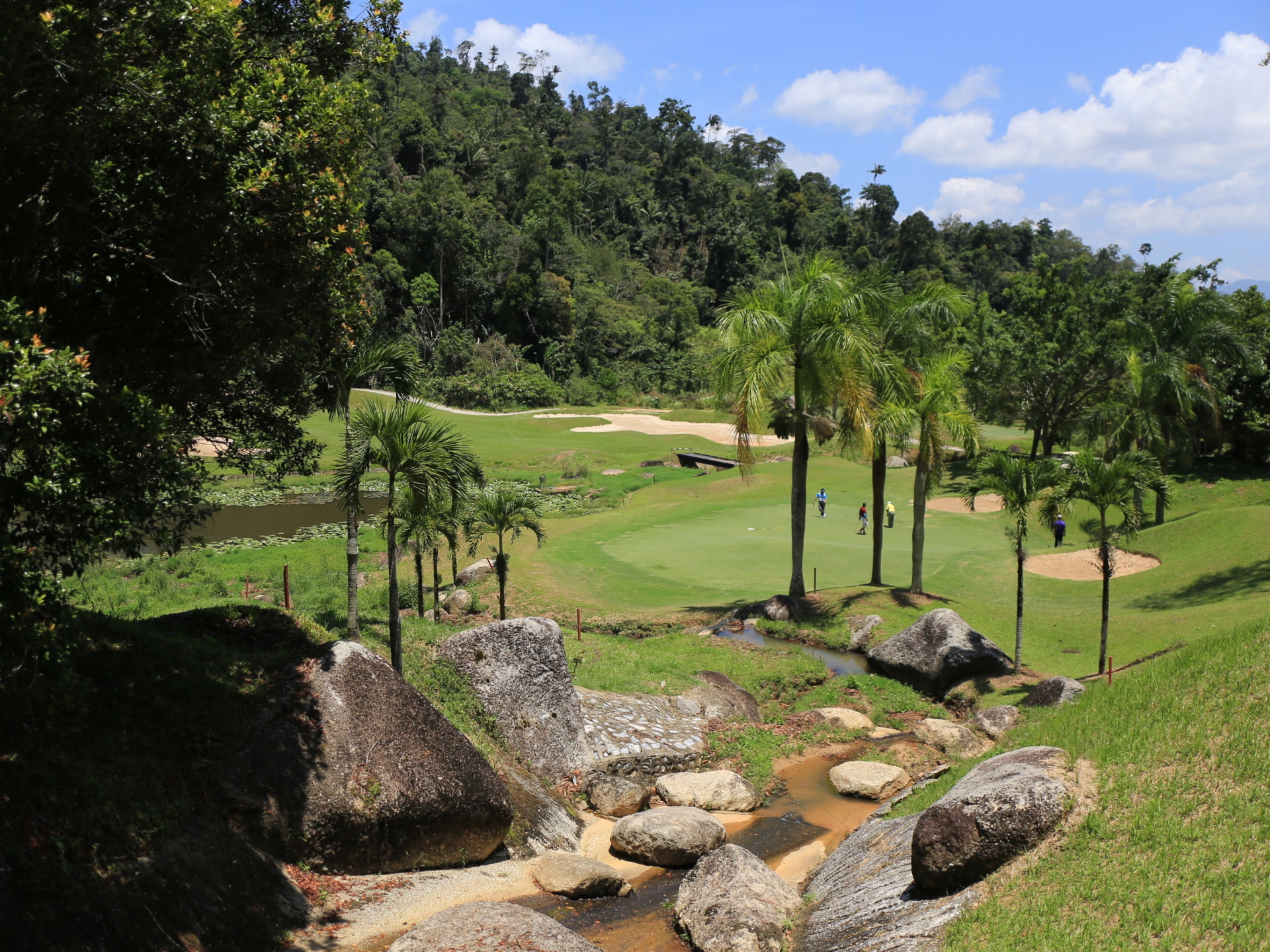 그렇다고 하여 골프코스가 리조트 골프장처럼 밋밋한 느낌이 있는 것이 아니라 어쩌면 말레이시아 그 어느 곳에서도 보기 힘들 만큼 다이나믹한 코스의 분위기입니다. 우리나라의 산악지형과 비슷하면서도 열대 유림의 수목으로 인하여 멋진 장관을 보여주고 있는 코스입니다.